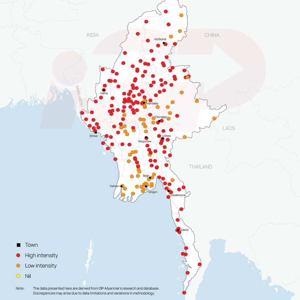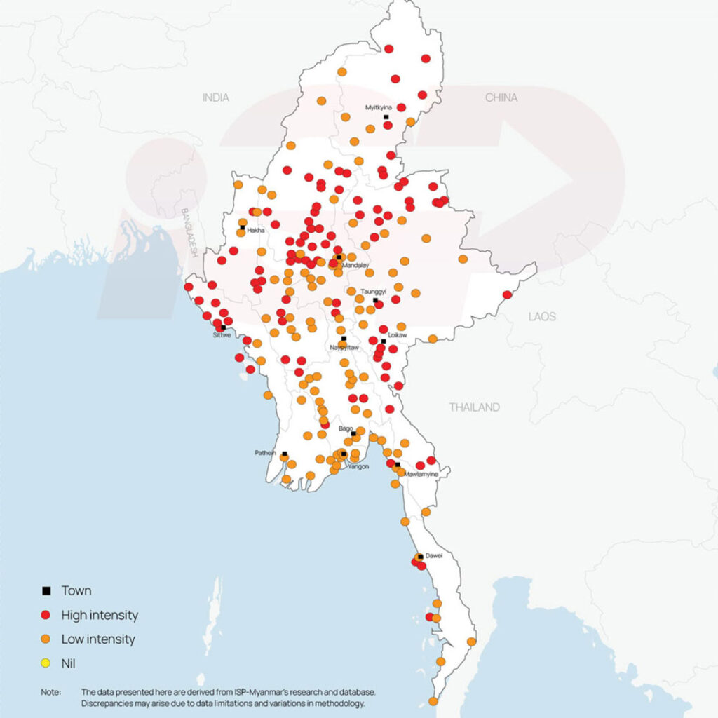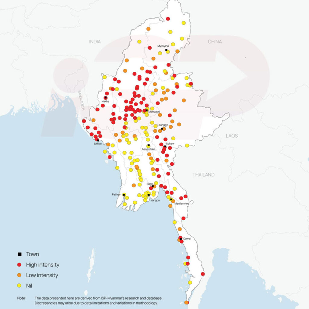 ISP-Myanmar conducted a study to assess the security risk level in these townships using the Security Risk Index, a composite index based on the number of clashes, airstrikes, arson, and fatalities.