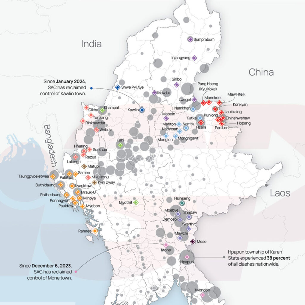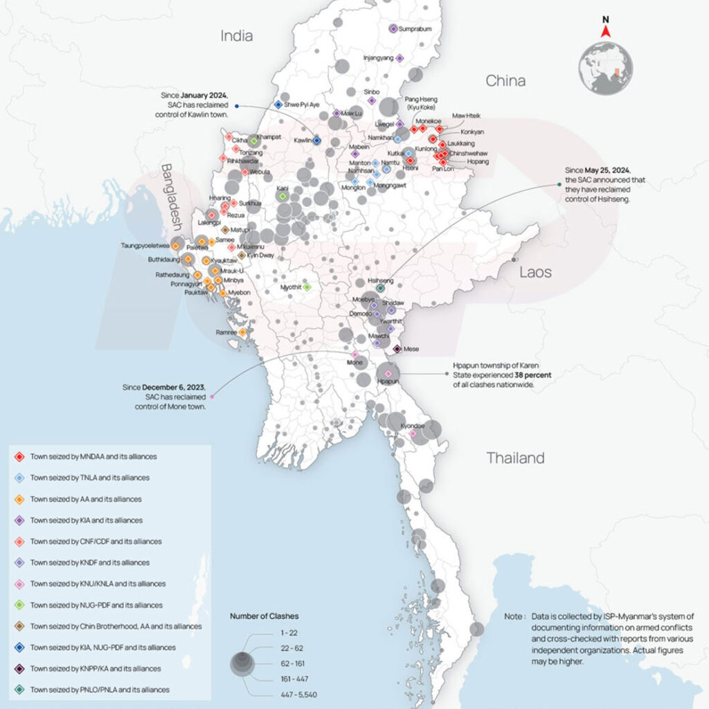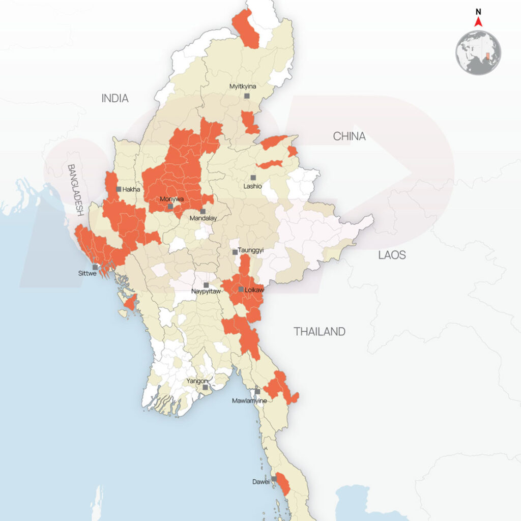ISP-Myanmar conducted a study to assess the security risk level in these townships using the Security Risk Index, a composite index based on the number of clashes, airstrikes, arson, and fatalities.