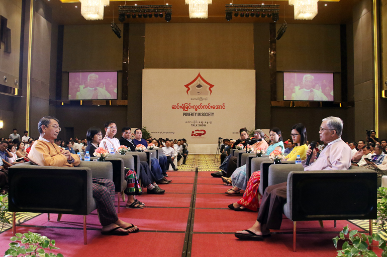 A talk show “Poverty in Society” which is a round table discussion on the future of Myanmar organized by Institute for Strategy and Policy – Myanmar, participated by the experts and professionals was held at Novotal Hotel, Yangon on September 16.