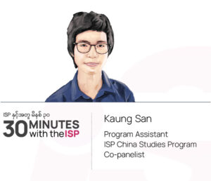 Greetings to all the Gabyin members attending today’s 30 Minutes with the ISP event. I’m Yee Mon, your host for today’s program. This is the fifth episode of 30 Minutes with the ISP, entitled; “Sanctions with Chinese Characteristics: The Case of Myanmar.” Today’s program features the Lead Panelist Miss Nan Lwin, Program Head of the China Studies Program at ISP-Myanmar, alongside Co-Panelist Mr. Kaung San, Program Assistant at the China Studies Program, and Mr. Htet Shein, Program Associate at the Conflict, Peace, and Security Program (CPSP). After the panelists’ presentations, we will address Gabyin members’ questions received in advance and live webinar attendees’ questions and comments. You can ask questions live, via the chat and Q&A function. For the questions and comments we could not address live today, we will respond to them via email later. The session will be recorded and later aired on DVB, as well as posted on the ISP-Myanmar website and social media channels.
