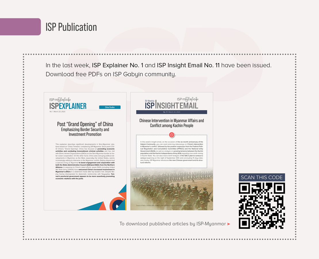ISP-Myanmar has observed an uptick in diplomatic trips to Naypyitaw. Chinese envoys are the most frequent visitors, as China has been pursuing trade promotion with Myanmar’s junta through Yunnan Province of China (See ISPExplainer No. 1). Since the beginning of the year, many Yunnan officials have visited Naypyitaw. In February, Mr. Li Chenyang, Director General of the Commerce Department of Yunnan Provincial Department of Commerce, conducted a visit to Naypyitaw, Myanmar. Subsequently, in March, Mr. Wang Ning, a Central Committee member and CPC Secretary of Yunnan Province, along with a delegation, also arrived in Naypyitaw. During their visit, the delegation engaged in negotiations and signed several agreements with the Myanmar junta. These agreements encompassed areas such as Grain Supply Chain Cooperation, Fertilizer Supply Chain Cooperation, the Kyaukphyu Future Mobile Clinic Project, an MoU on import cooperation of agricultural produce in Myanmar, and the Power Purchase Agreement for Dapein 1 Hydropower Plant, among others.