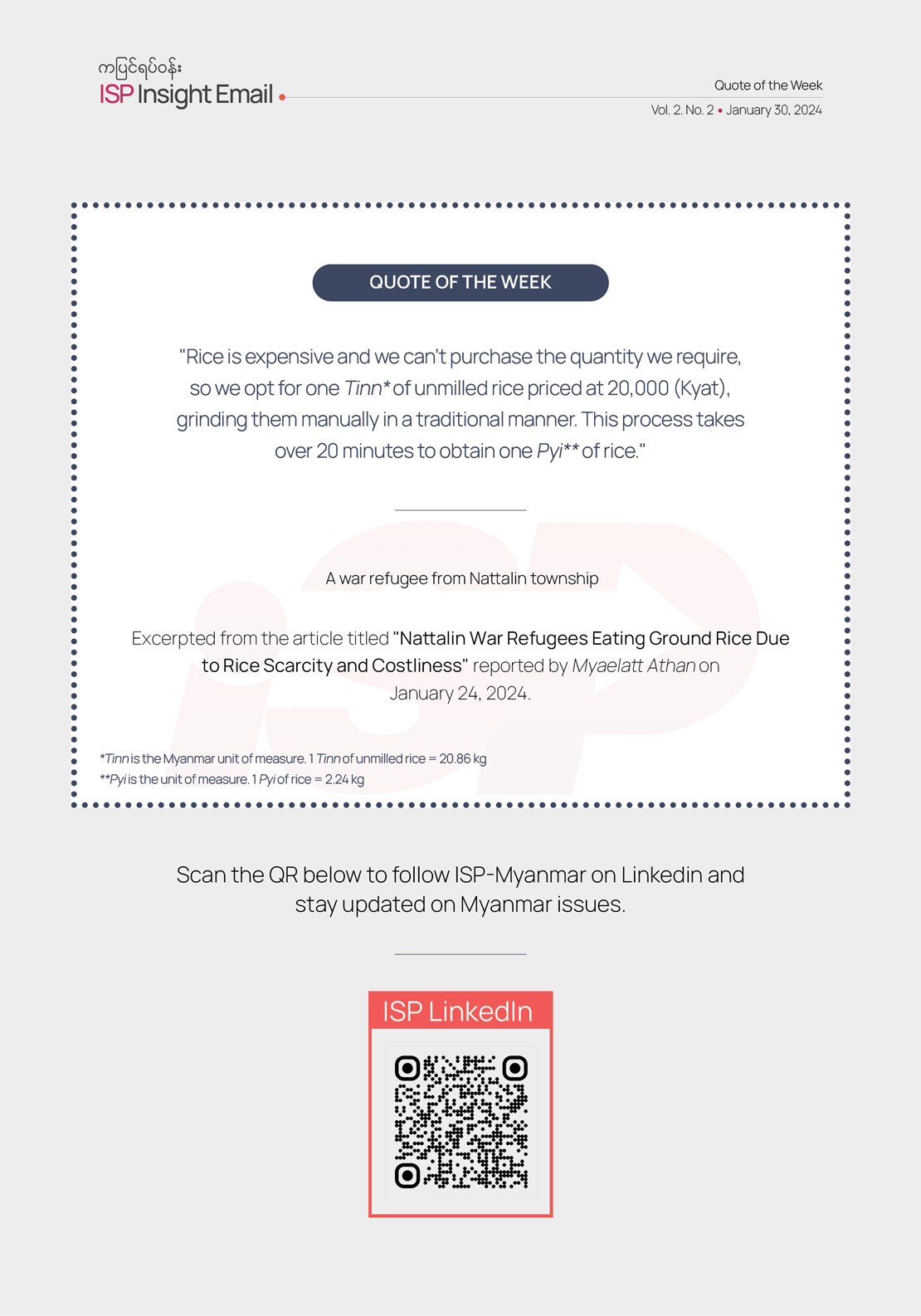 This Insight Email is published on February 2, 2024, as a translation of the original Burmese language version that ISP-Myanmar sent out to the ISP Gabyin Community members on January 30, 2024.
