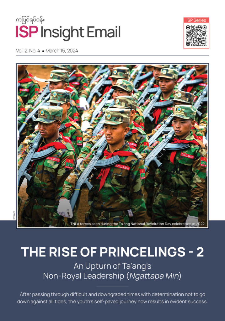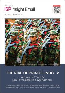 Our previous issue, “The Rise of the Princelings -1,” introduced fresh faces in the Wa leadership (UWSP/UWSA). This week’s sequel introduces the leadership of the Palaung State Liberation Front (PSLF) and its armed wing, the Ta’ang National Liberation Army (TNLA), and their emphasis on institutions. The TNLA has seized control of several cities following Operation 1027 and their priority has now shifted to implementing administrative institutions and systems. While outcomes remain uncertain, youth leadership’s innovative thinking and fresh perspectives are poised to steer politics, economy, and other social spheres along trajectories distinct from those led by older generations. The rise of the new Ta’ang generational leadership diverges from the Wa, who traditionally inherit the legacy of previous generations. Ta’ang new leaders forged their own paths, distinct from direct lineage ties, which in Burmese culture called “Ngattapa Min,” signifying a king unrelated by bloodline to royal predecessors. In future ISP Insight Emails, ISP-Myanmar will feature the Rakhine, Karenni, and other “Ngattapa Min” that emerged during the Spring Revolution.