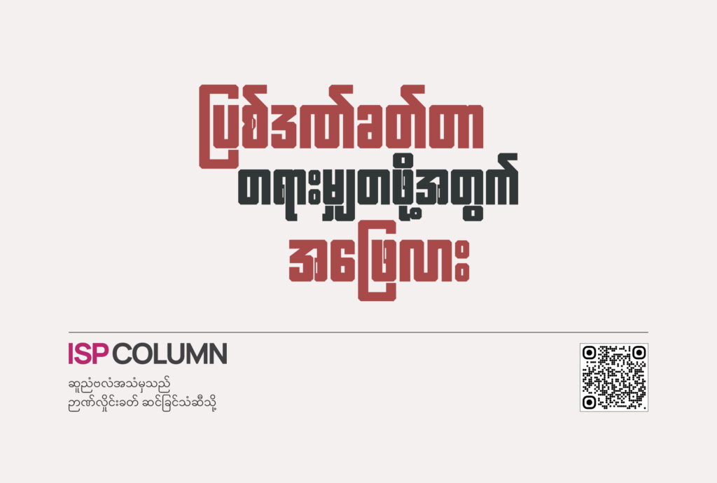 ဒါပေမဲ့ ပြီးခဲ့တဲ့နှစ်တွေက မြန်မာပြည်ဖြစ်စဉ်တွေ ပြန်ကြည့်လိုက်ရင် ပြဿနာတခုကို ဖြေရှင်းဖို့ကြိုးစားတိုင်း လူအုပ်စုလိုက် ဝုန်းဒိုင်းကြဲကြလို့ နဂိုပြဿနာမပြေလည်ဘဲ နောက်ပြဿနာအသစ်ပဲ ထပ်တိုးလာတယ်။