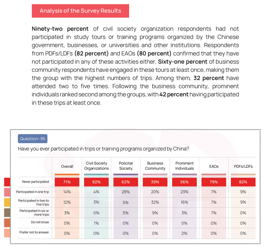 This section showcases the findings of key stakeholders’ perceptions on four critical questions, such as: How beneficial is China’s development aid? Is democracy with Chinese characteristics a model Myanmar should emulate? Should Myanmar emulate the Chinese governance model? Have you ever participated in trips or training programs organized by China?