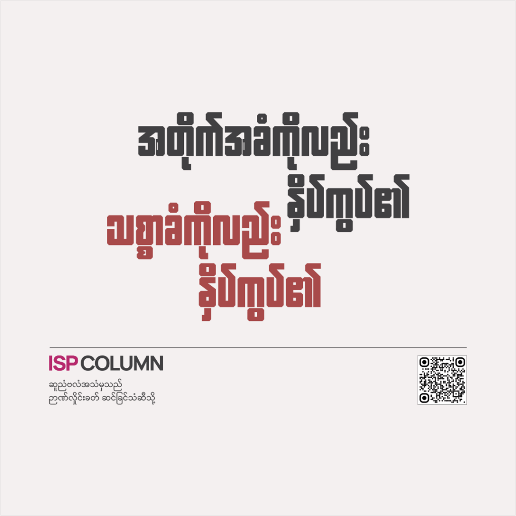 4 Nov 2025 အတိုက်အခံကိုလည်း နှိပ်ကွပ်၏၊ သစ္စာခံကိုလည်း နှိပ်ကွပ်၏ စစ်ခေါင်းဆောင်တဦးသည် သူ၏ အတိုက်အခံ/ရန်သူဟု သဘောထားလျှင် တောင်ကုန်းတခုကို သိမ်းယူသလို လက်ဦးမှုရယူမည်သာဖြစ်သည်။ နိုင်ငံရေးကျင့်ဝတ်သိက္ခာအရ စဥ်းစားလိမ့်မည်မဟုတ်ချေ။ ‘ကျနော် ဘာမဆိုလုပ်ရဲတယ်’ဆိုသည့် စကားမှာ ဗိုလ်ချုပ်မှူးကြီး မင်းအောင်လှိုင် အာဏာသိမ်းဖို့ ကြိုတင်လေသံပစ်ခဲ့သော စကားဖြစ်သည်။ ပထမဆုံးဝါကျတွင် မေးထားသော မေးခွန်း၏ အဖြေလည်း ဖြစ်သည်။ အာဏာရှင်ဆိုသည်မှာ အတိုက်အခံကိုလည်း နှိပ်ကွပ်၏၊ သစ္စာခံကိုလည်း နှိပ်ကွပ်၏။