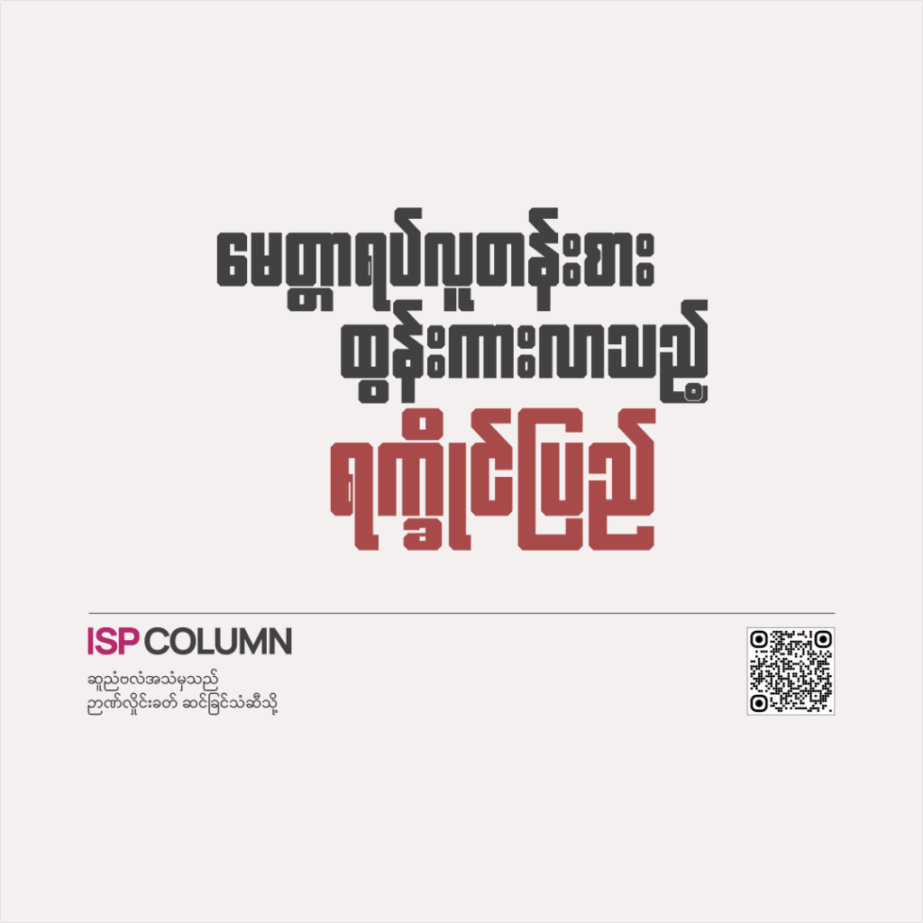 21 Mar 2025 စစ်နှင့်ကျွမ်းဝင်ခြင်း ပကဖ၊ ပလဖတွေရဲ့ အကြမ်းဖက်မှုတွေကို ကြားရတဲ့အခါ တော်လှန်ရေးရဲ့ တိမ်းညွတ်မှုဟာ မေးခွန်းထုတ်စရာ ဖြစ်လာပါတယ်။ ... စနစ်ချထားတဲ့ စစ်တပ်ရဲ့ စစ်အုပ်ချုပ်ရေးနဲ့ စနစ်မချနိုင်သေးတဲ့ စစ်တပ်လေးတွေရဲ့ စစ်အုပ်ချုပ်ရေးအကြားမှာ ပြည်သူလူထုရဲ့ သည်းခံနိုင်စွမ်းဟာ နေ့တိုင်း အစမ်းသပ်ခံဖြစ်လာပါတယ်။