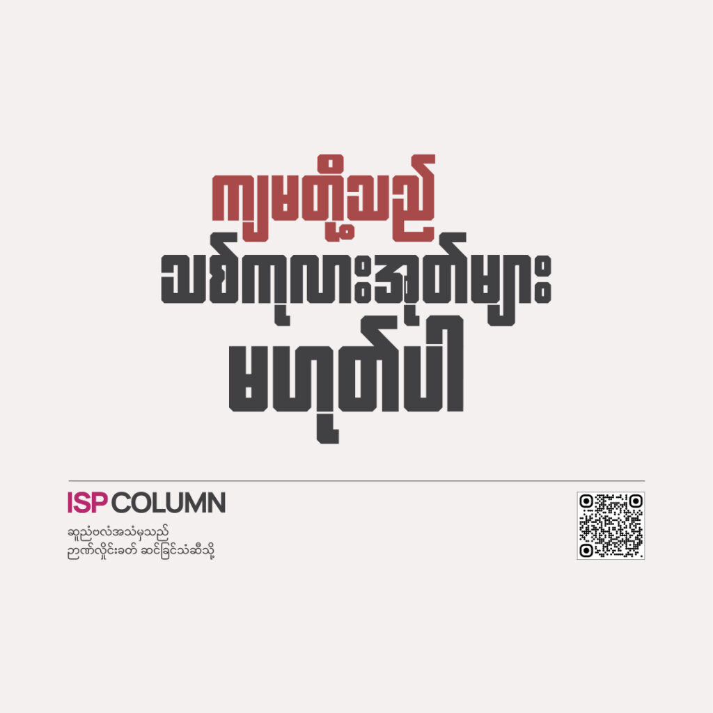 16 Sep 2025 ကျမတို့သည် သစ်ကုလားအုတ်များ မဟုတ်ပါ ကောင်းကင်ကြီးက ကြည်လင်နေကာ ကြယ်ကလေးများ တလုံးနှစ်လုံးပင်မြင်နေရသည်။ မူ့ဖော်ကတော့ နေ့လယ်က အဖြစ်အပျက်ကို တွေးမိကာ ငြိမ်နေမိသည်။ ထို့နောက်မှ သတိရသွားကာ “ဂျရာ့ဖ်ဆိုတာဘာလဲသိလား” ဟူ၍ ဘူးမြာကို မေးမိသည်။ ဘူးမြာကတော့ အဝေးရှိ အမှောင်ထုကို ငေးလျက်နှင့်ပင် “သစ်ကုလားအုတ်ကိုခေါ်တာ”ဟု ခပ်လေးလေးပြောသည်။ မူ့ဖော်၏ ပါးနှစ်ဖက်တွင် ပူခနဲဖြစ်သွားသည်။