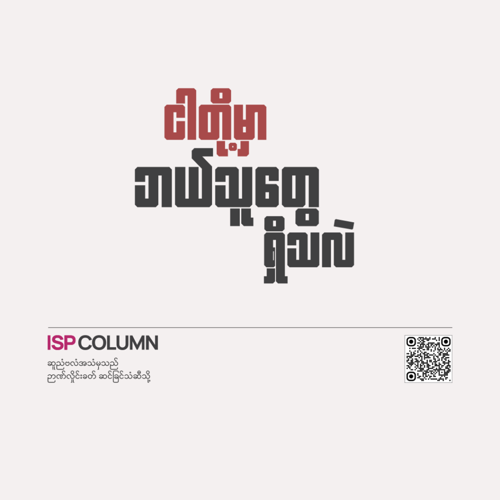 22 Dec 2025 ငါတို့မှာ ဘယ်သူတွေရှိသလဲ အားနည်းချည့်နဲ့တဲ့ အင်အားစုတွေက ဘယ်လိုပဲဖြစ်ရမယ်ဆိုတဲ့ နှုန်းစံတန်ဖိုးတွေနဲ့ စည်းမျဉ်းတွေကို ဖြစ်ချင်စိတ်အခြေခံနဲ့ ပုံဖော်လို့မရပါဘူး...လူတိုင်းကတော့ ကိုယ့်နိုင်ငံကို မနက်ဖြန်သန်ဘက်ခါ ဖင်လန်လို၊ နော်ဝေလို ဖြစ်ချင်ကြတာချည်းပါပဲ။ ဒါပေမဲ့ ဖြစ်ချင်စိတ်အခြေခံတခုတည်းနဲ့ အချက်အလက်အခြေခံဆန်းစစ်ချက်မပါဘဲ ကြွေးကြော်နေရင်တော့ ‘ထမင်းဆီဆမ်း ရွှေလင်ပန်း’ကမှ တကယ်ရဖို့ နီးစပ်ပါဦးမယ်။