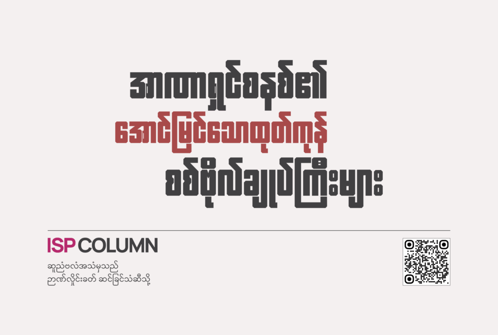 1 Aug 2025 စစ်ကောင်စီမှသည် စစ်ကော်မရှင်သို့ – စစ်ခေါင်းဆောင်၏ အာဏာကစားပွဲ စစ်ခေါင်းဆောင်ဟာ အာဏာသိမ်းပြီး လေးနှစ်ခွဲအကြာမှာတော့ နိုင်ငံတော်စီမံအုပ်ချုပ်ရေးကောင်စီ(စစ်ကောင်စီ)ဆိုတဲ့နာမည်ကို အဆုံးသတ်လိုက်ပြီး နာမည်သစ်နဲ့ ပြန်လည်ဖွဲ့စည်းလိုက်ပါပြီ။ ဒါကတော့ ‘နိုင်ငံတော်လုံခြုံရေးနဲ့ အေးချမ်းသာယာရေးကော်မရှင်’ဆိုတာပါပဲ။ သူ့ကိုလည်း အရင်အတိုင်းပဲ စစ်ကော်မရှင်လို့ ခေါ်နေကြပါတယ်။ တခါ ကာလုံအတွက် ရာထူးအသစ်ဖန်တီးခန့်ထားလိုက်ပြန်ပါတယ်။ အမျိုးသားညီညွတ်ရေးအစိုးရ (NUG)ကို ပြုပြင်ပြောင်းလဲဖို့ တိုက်တွန်းသံတွေ တော်လှန်ရေးအင်အားစုတွေအကြား ကျယ်ကျယ်လောင်လောင် ထွက်ပေါ်ချိန်မှာ စစ်ကောင်စီက အပြောင်းအလဲကို အရင်လုပ်လိုက်တာပါ။ ဒါဟာ သူစီစဉ်ထားတဲ့ အချိန်ဇယားအရလို့လည်း ယူဆနိုင်ပါတယ်။ စစ်ကောင်စီရဲ့ အခုအပြောင်းအလဲဟာ ရွေးကောက်ပွဲကို စိတ်တိုင်းကျ ကျင်းပနိုင်ဖို့နဲ့ ရွေးကောက်ပွဲအလွန် အာဏာဆက်ကိုင်ထားနိုင်ဖို့အတွက် စနစ်တကျ ပြင်ထားတာကို မြင်ရပါတယ်။ ကာလုံလို့ အတိုကောက်ခေါ်တဲ့ အမျိုးသားကာကွယ်ရေးနဲ့ လုံခြုံရေးကောင်စီကို အာဏာသုံးရပ်ဖြစ်တဲ့ အုပ်ချုပ်ရေး၊ ဥပဒေပြုရေးနဲ့ တရားစီရင်ရေးတွေကို ပြန်အပ်လိုက်ပြီလို့ ဆိုပါတယ်။ ဒီပြောင်းလဲလိုက်တဲ့ ပုံစံအသစ်ကို လည်ပတ်ဖို့ ယန္တရားလေးခု […]