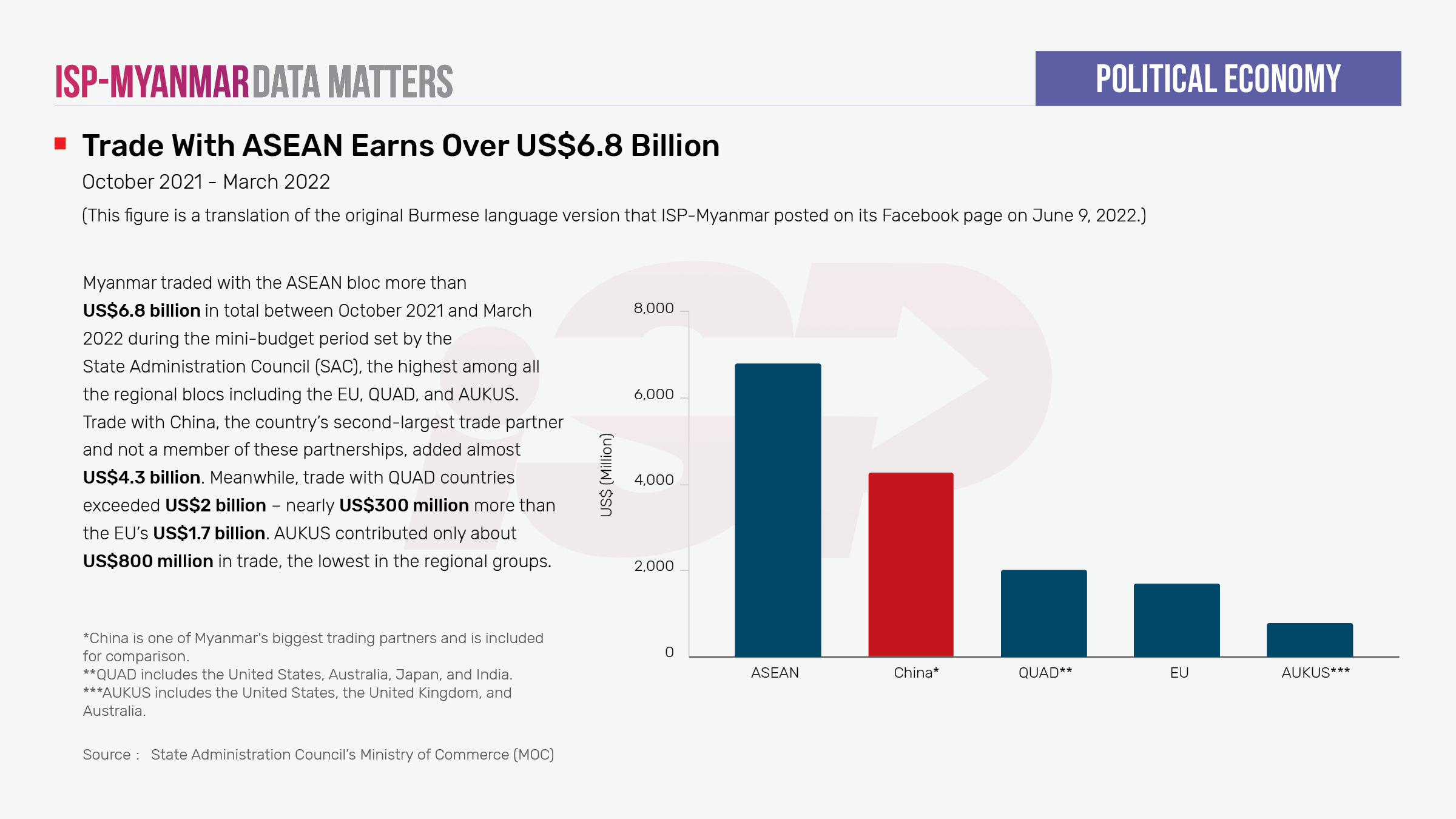 The impact of the post-coup economic crisis and western sanctions on Myanmar’s foreign trade will have a pivotal effect on Myanmar’s economic and democratic reforms. Economic performance reflects a wide range of foreign political and economic considerations, which help to illustrate the role of foreign countries in Myanmar’s democratization efforts.